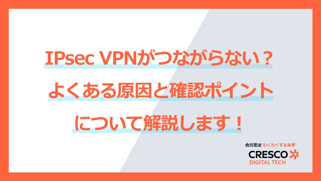 記事を見るこんにちは!クレスコ・デジタルテクノロジーズのわたろうです。 企業ネットワークでは、セキュアな拠点間通信やリモートアクセスを実現するため、IPsec VPNが広く使われています。しかし実際に構築すると、次のようなトラブルに遭遇することがあります。 ・設定は正しいはずなのに接続できない ・トンネルは確立しているのに通信できない 本記事では、IPsec VPNの接続プロセスを整理しつつ、トラブル発生時の確認ポイントをフェーズごとに解説します。