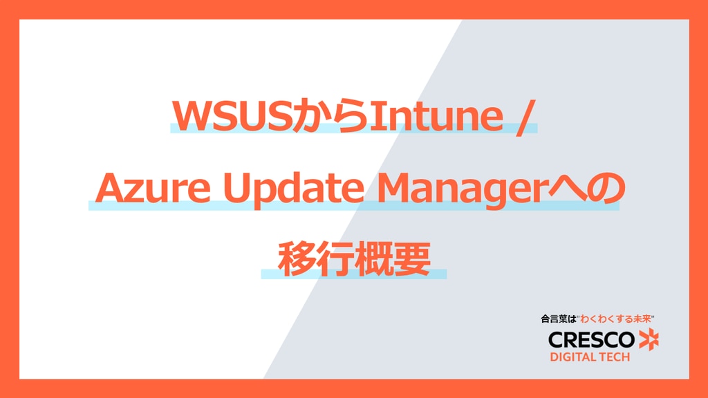 こんにちは、株式会社クレスコ・デジタルテクノロジーズの茅野です。 MicrosoftのWindows Server Update Services(WSUS)の非推奨化が発表された今、クラウドベースの更新管理への移行を検討する企業が増えています。本記事では、社内の移行検証を通じて得られた移行のポイントや考え方についてご紹介します。