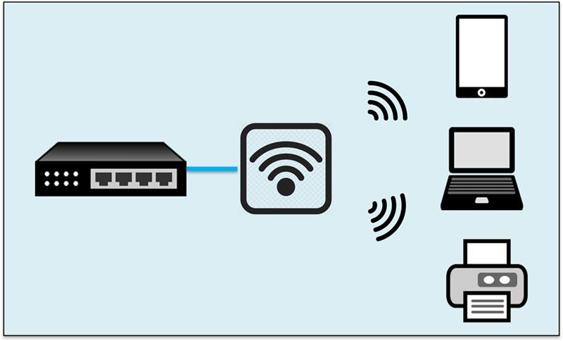 無線アクセスポイントの役割を一言で表すと、「有線ネットワークと無線端末の橋渡し」です。