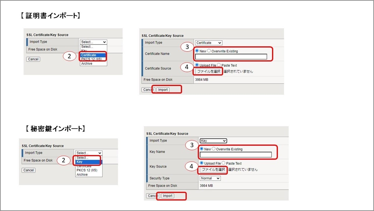④Certificate SourceからBIG-IPに取り込む証明書を選択し、Importをクリックします。中間証明書がある場合は同様の手順でインポートします。