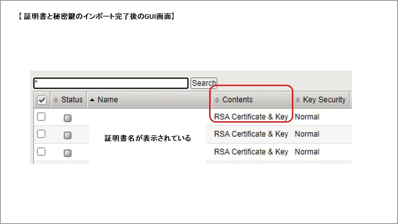 設定が完了すると、以下のようにContentsが「Certificate & Key」と表記されます。