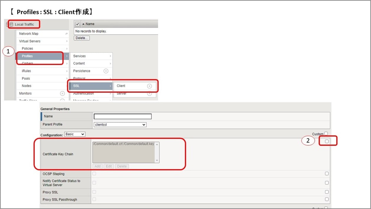 ①Local Traffic設定からProfiles : SSL : Clientを選択し、Createをクリックします。