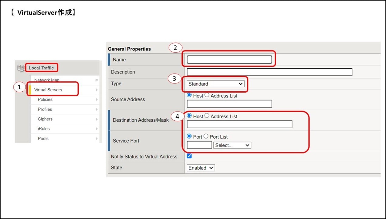 SSL Profile、Poolの作成が完了したら、新規VirtualServerに適用していきます。