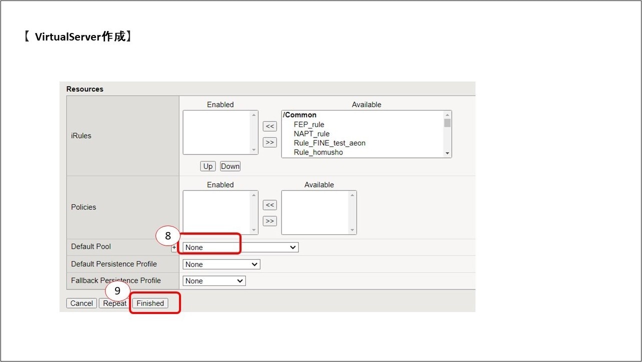 ⑧Default Poolにて負荷分散先のサーバIPアドレスを設定したPoolを選択します。