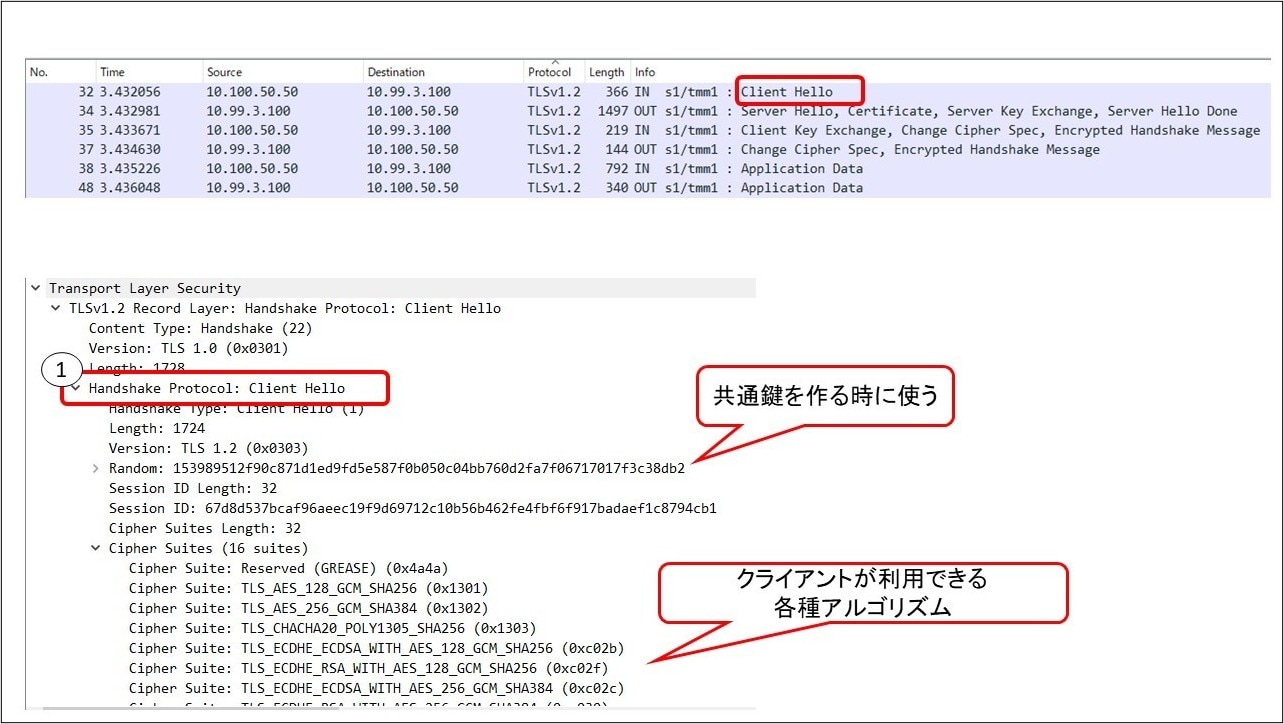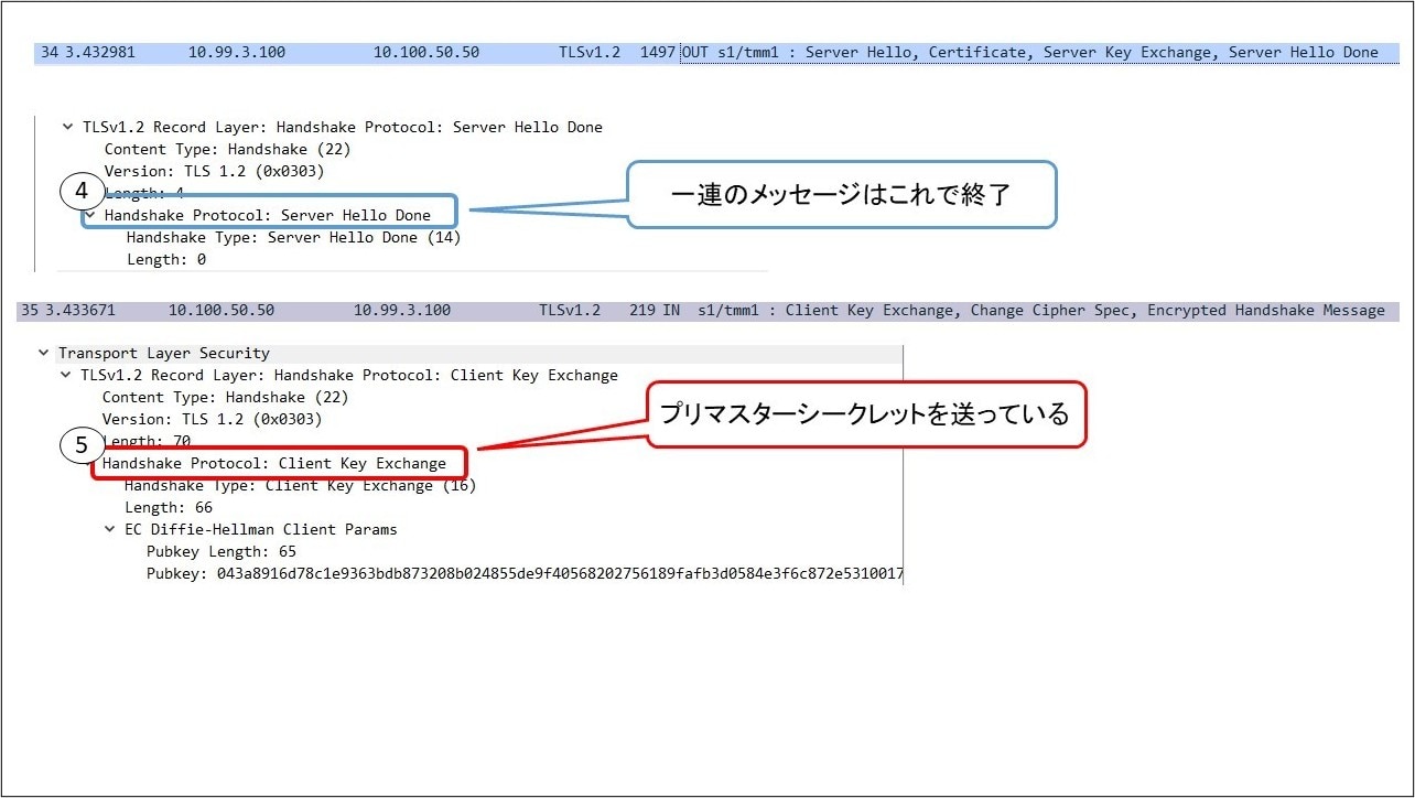 クライアントはBIG-IPとの間で使用する共通鍵の素となる「プリマスターシークレット」を送っています。