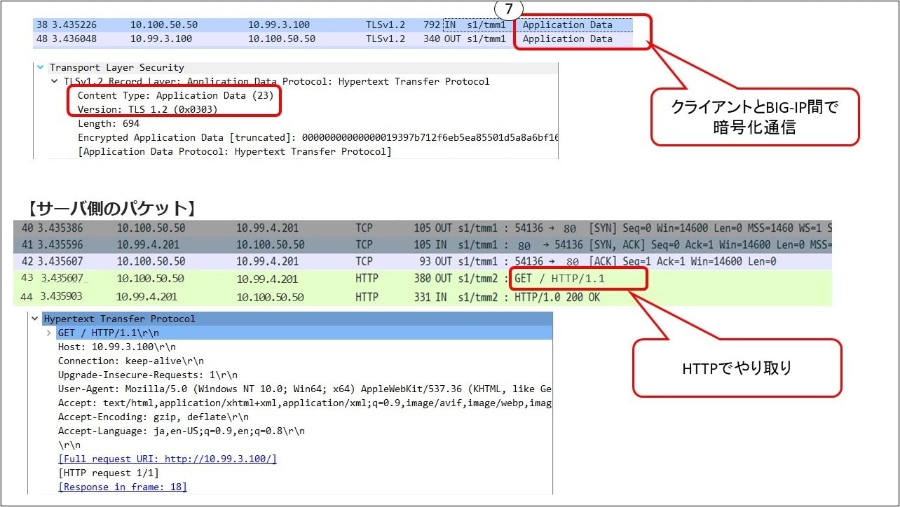 クライアントとBIG-IP間で暗号化通信が行われています。