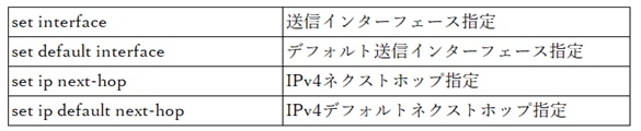 ルートマップに一致したトラフィックに対して、次ホップや送信インターフェースを指定します。